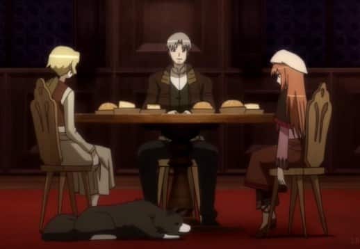 Holo schließt sich Lawrence an, nachdem sie ihm anbietet, ihm als Führerin durch die Region zu dienen, da sie über umfangreiches Wissen über die Gegend und ihre Bewohner verfügt. Im Gegenzug bittet sie ihn, sie in ihre Heimat im Norden zu bringen, von der sie sich seit langem entfernt fühlt. Während ihrer Reise entwickelt sich eine komplexe Beziehung zwischen den beiden, die von gegenseitigem Respekt, aber auch von Spannungen geprägt ist. Holo, die oft spöttisch und stolz auftritt, zeigt zunehmend ihre verletzliche Seite, während Lawrence mit seinen eigenen Gefühlen und seiner wachsenden Zuneigung zu ihr kämpft.