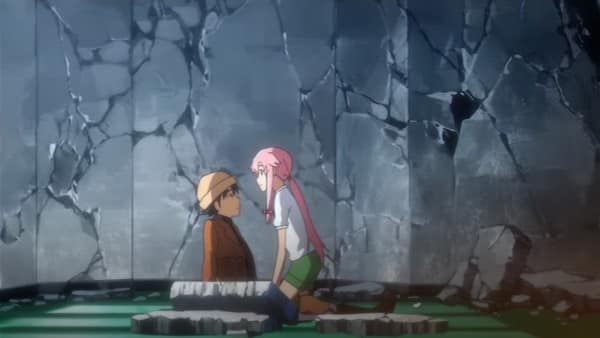 Die Charaktere bleiben ihren ursprünglichen Persönlichkeiten treu: Yukiteru ist weiterhin von Unsicherheit und moralischen Konflikten geprägt, während Yuno ihre obsessive Liebe und Entschlossenheit beibehält, jedoch auch mit ihren inneren Dämonen kämpft. Die OVA vertieft die psychologischen Aspekte der Charaktere und zeigt, wie sie mit den Konsequenzen ihrer Handlungen umgehen. Die Handlung ist dicht und emotional geladen, wobei die Beziehung zwischen Yukiteru und Yuno im Mittelpunkt steht. Die OVA dient als abschließendes Kapitel der *Mirai Nikki*-Geschichte und bietet Fans eine befriedigende Auflösung der Charakterentwicklung und des Plots.