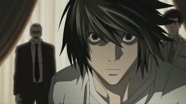 L ist eindeutig ein etwas seltsamer und mysteriöser Gegenspieler von Kira. Er ist auf jeden fall ein großes Genie und er weiß immer was zu tun ist wobei seine Methoden wie ein Spiel sind wo er rundheraus den nächsten Zu aus dem Ärmel wirft. Er ist daher ein sehr bekannter Privatdetektiv über den man aber nichts weiß da er weder Identität noch Aussehen von sich Preis gibt. Er isst gerne Süßigkeiten, vor allem Kekse, und seine Sitzweisen sind immer sehr Interessant, er sitzt immer lässig da oder zieht seine Knie eng an seinen Körper heran während er auf einem Stuhl oder Sessel sitzt. Eine Angewohnheit von ihm ist es an seinen Fingernägel zu knabbern vor allem wenn er am nachdenken ist. Im ersten Band vom Manga sieht man nur ungenau seine Konturen, von seinem Gesicht kann man das wesentliche wie die Augen nicht erkennen.