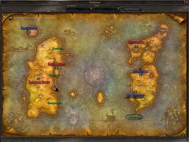 Rechts liegt Kalimdor und links liegen die Östlichen Königreiche.