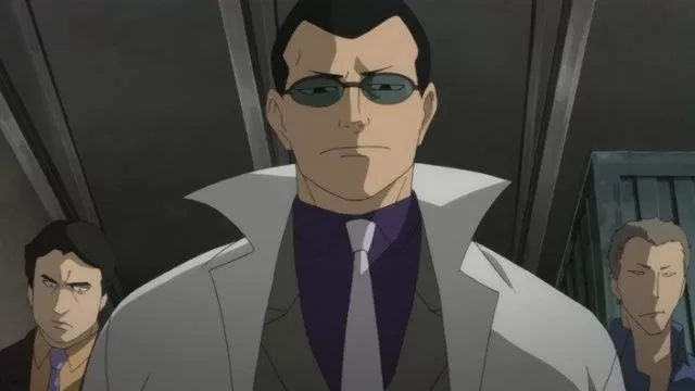Aussehen: schwarze Haare, schwarze Augen. Trägt immer Anzüge