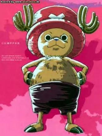 Chopper ist ein Elch mit blauer Nase. Er wurde deswegen von seiner Herde verstoßen. Chopper aß damals die Mensch-Frucht. Als “Jeti” wurde er gejagt, bekam jedoch Dr. Bader als Freund. Nach dessen Tod war er bei Dr.Kuleha in der Lehre und wurde danach Schiffsarzt bei Ruffy.