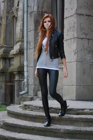 Merkmale: ihre roten Haare und ihre Lederjacke die sie zu jedem Outfit trägt